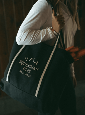 Featuring cream embroidered VALA Equestrian branding and a matching white shoulder strap, it brings a bold, modern contrast to your everyday carry. With its durable, structured shape and elevated design details, it’s built to hold everything all your essentials.